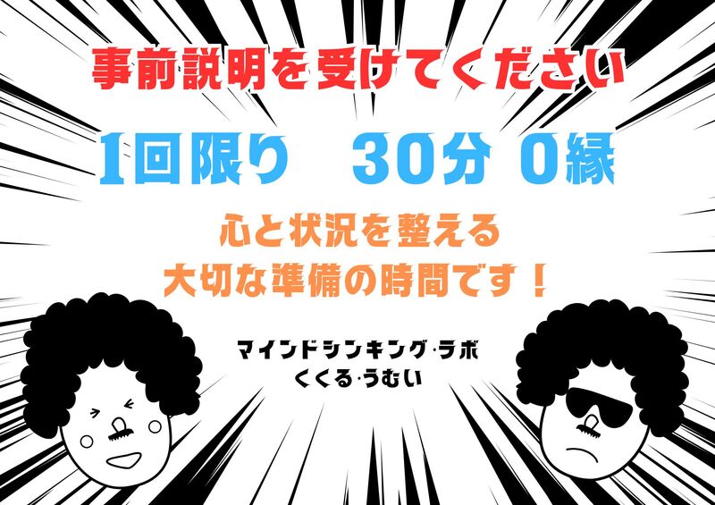 シンバと初めてお話される方は、 事前説明(30分・無料)必ずお受けください。